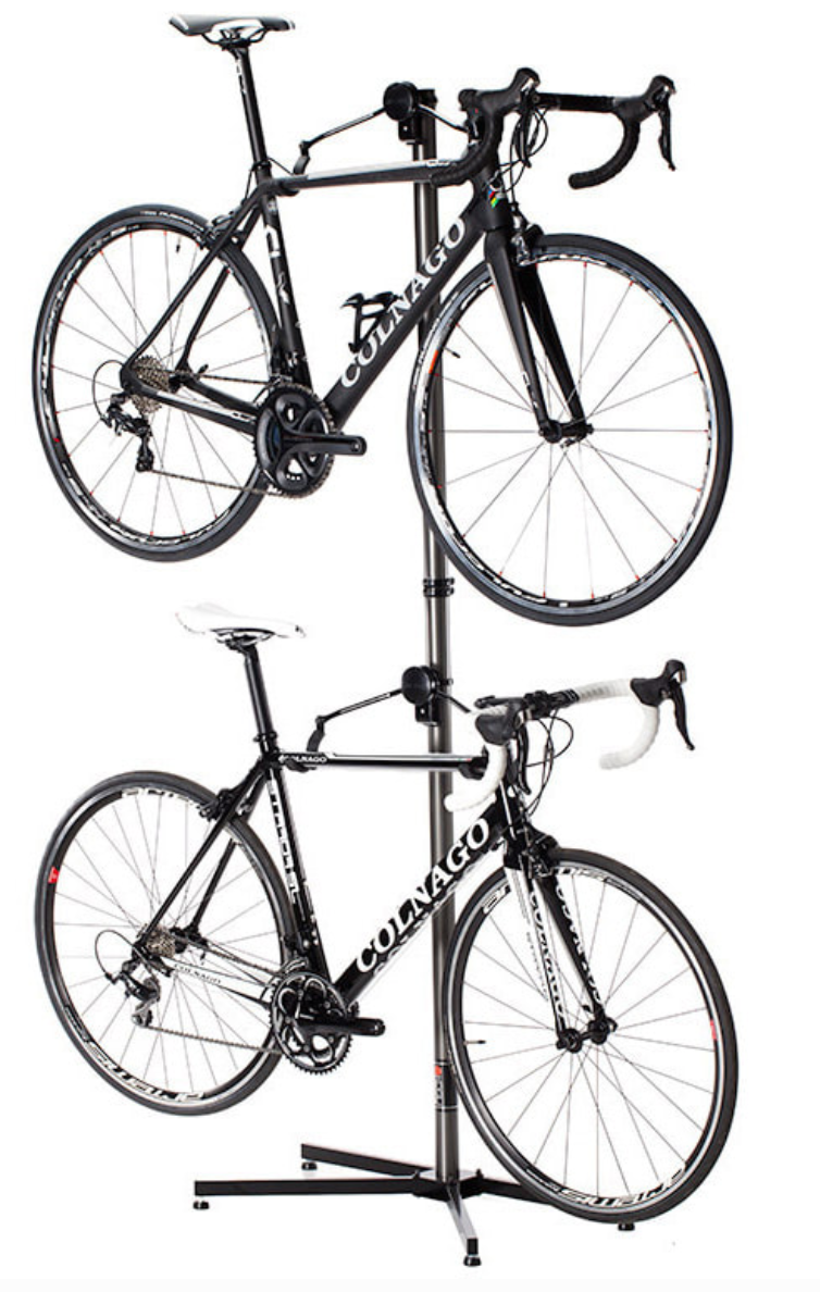 - Estante independiente seguro y estable de 2m de altura para sostener dos bicicletas horizontalmente.